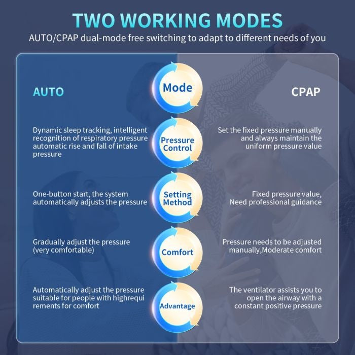- Modes: CPAP / Auto / Ramp