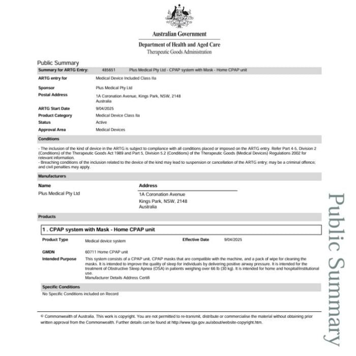 - Certifications: TGA | ISO13485