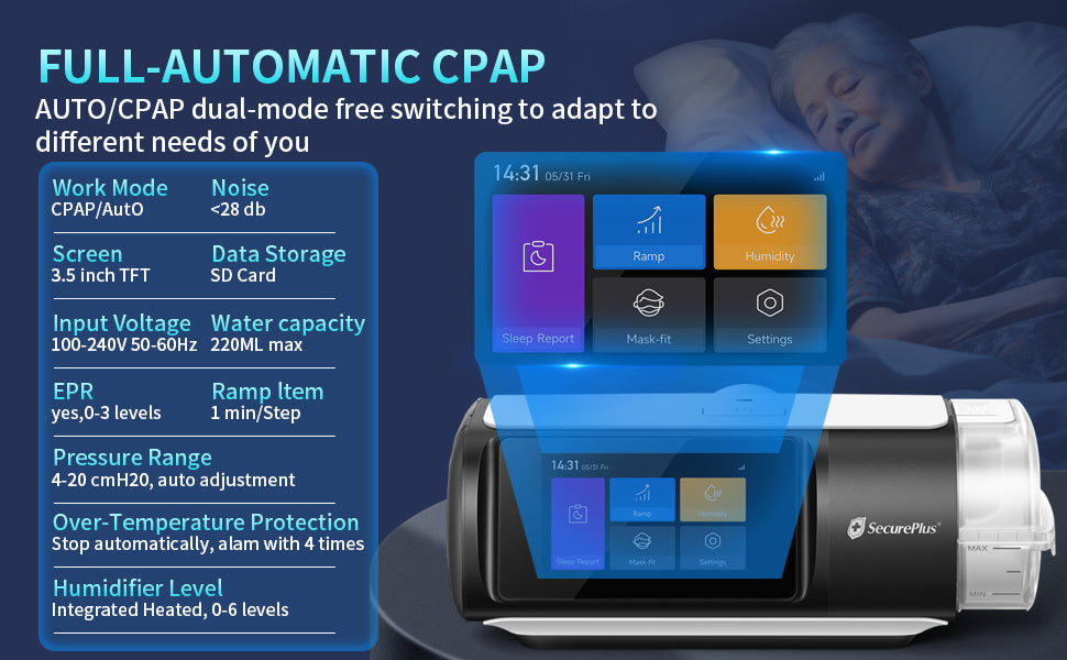 - Secure Plus CPAP Machine 3.0 Auto with CPAP Full Face Mask Set